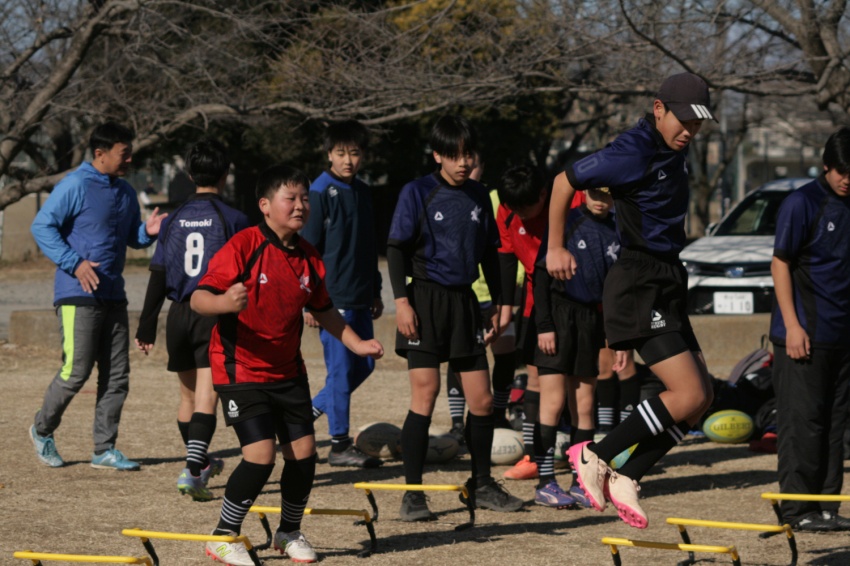 2月1日_日曜日の活動 本日はラグあそクラスと小学生は余熱広場で活動しました。本日からローテーション・トレーニングが再開されました。今後はますますローテーション・トレーニングの重要性が増してくるのでさらに充実させていきたいなと考えました。本日は中3OBのこうせい、さんぞう、やす、こたろうが来て、進路報告+練習相手をしてくれました。 トップチームは鷲宮自由広場で活動しました。中1は初めて自分たちだけで電車+徒歩で移動しました。安全に移動ができ、グランドでの活動もしっかり取り組みました。